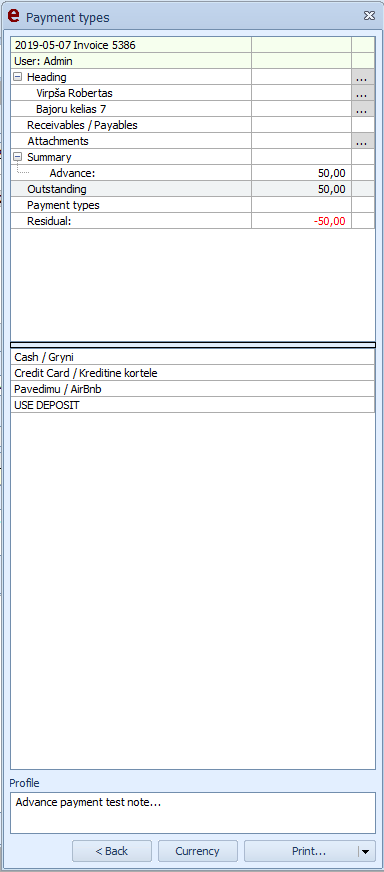 Advance payment function allow to collect money and calculate VAT in same time. This function can be used also and for Gift card functionality if you pay VAT on the moment of gift card sell.