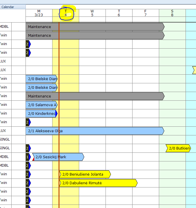 b.2) Select reservation with left mouse click and drop down to preferred room