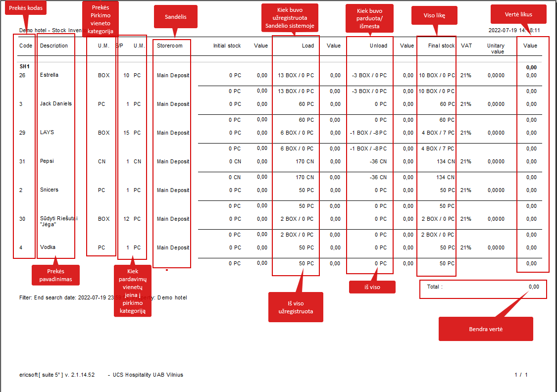 - Kiek buvo parduota, transportuota arba nurašyta.