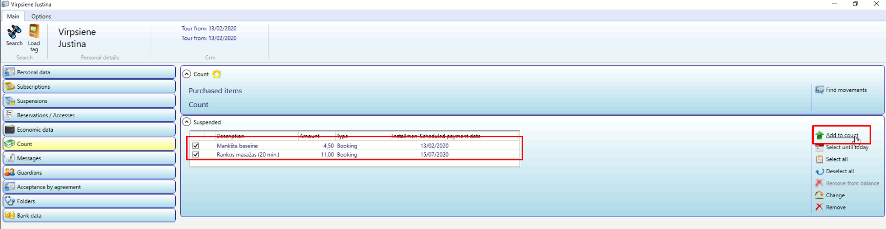 Pasirenkame svečia ir spustelname ant neapmokėtos sumos