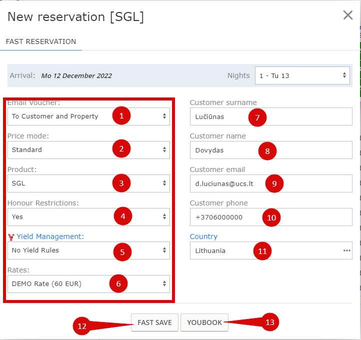 - Spauskite YOUBOOK, jeigu norite kurti rezervaciją ir detaliau ją aprašyti.